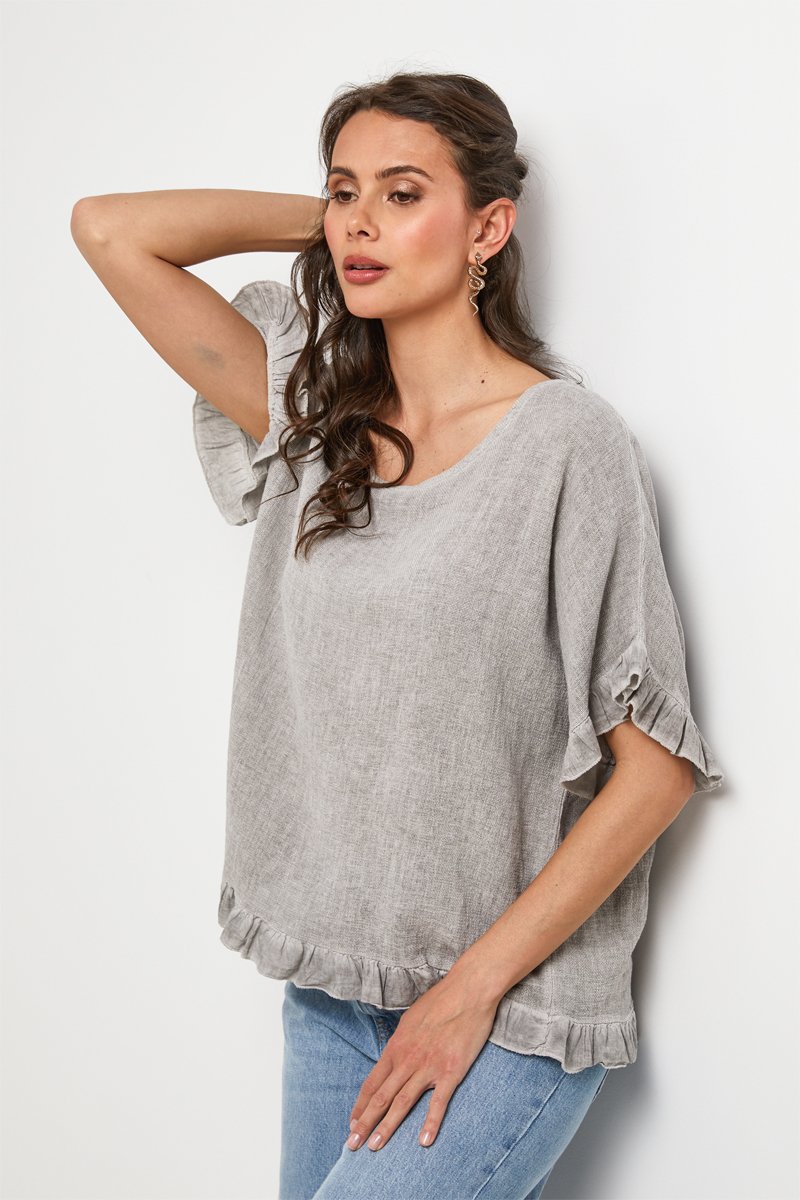 Top in lino - Taupe