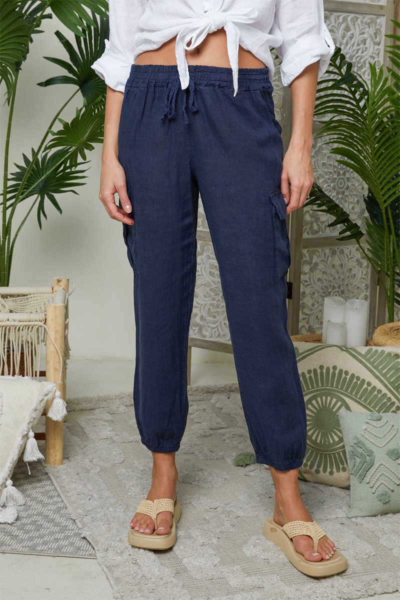 Pantaloni cargo in lino - Navy