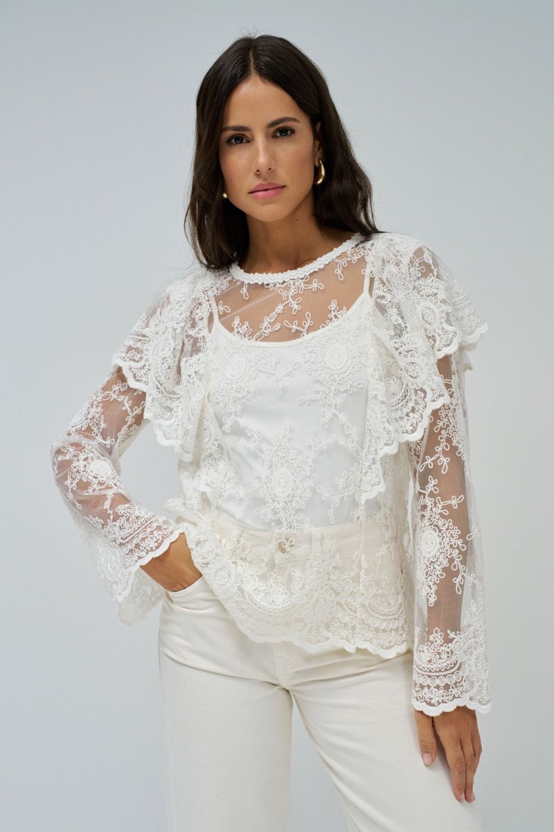 Blusa regular in pizzo - Ecrù