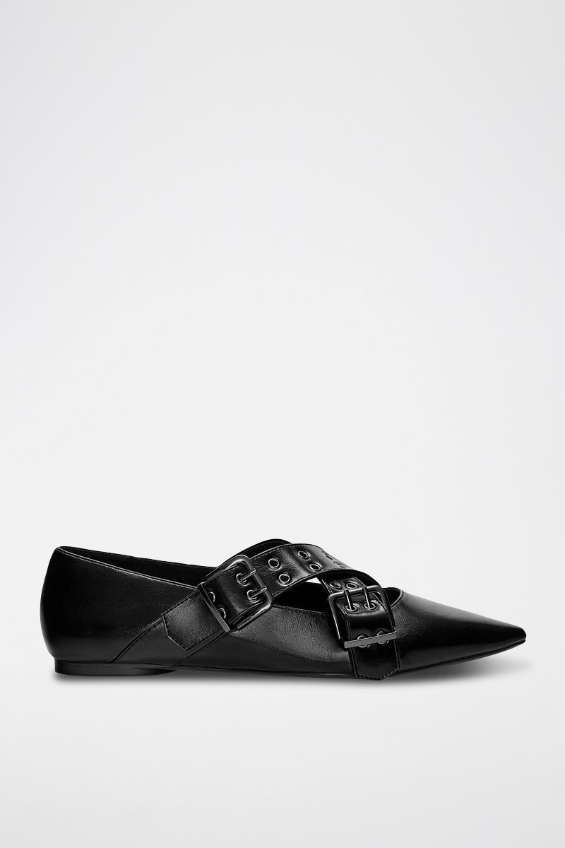 Chiusura con cinturini e fibbie con inserto in metallo.