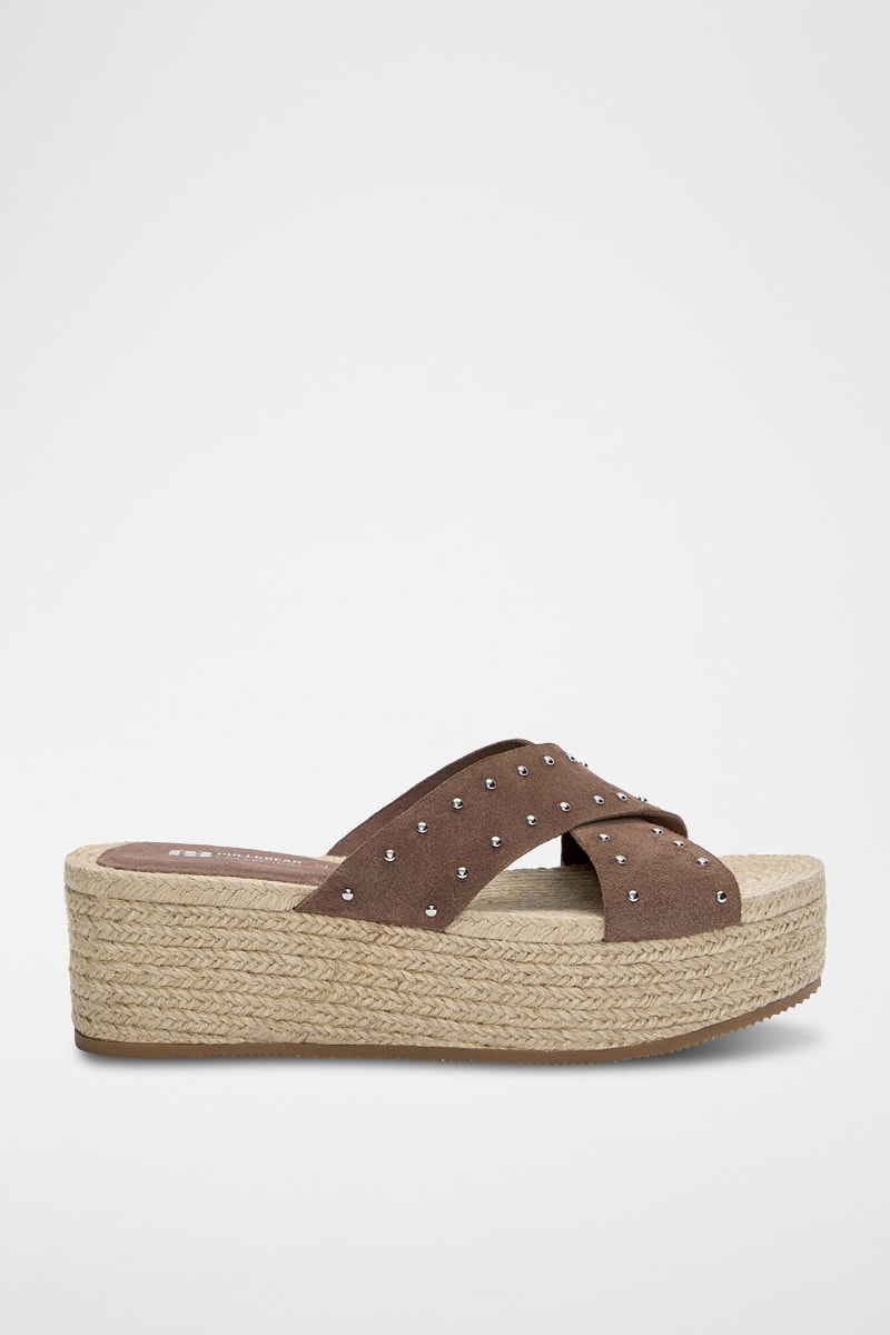 Ciabatte con zeppa in pelle scamosciata - Marrone