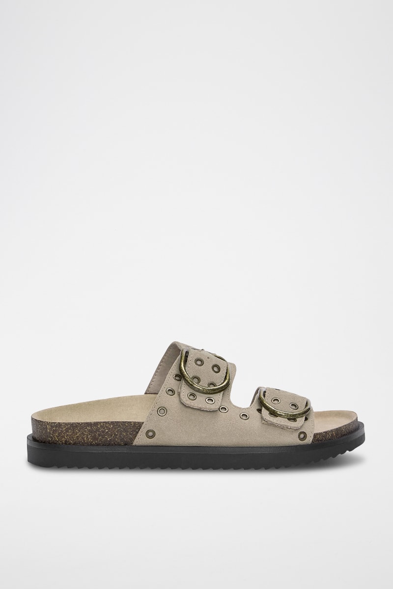 Cinturini con fibbia e occhielli metallici sul davanti.