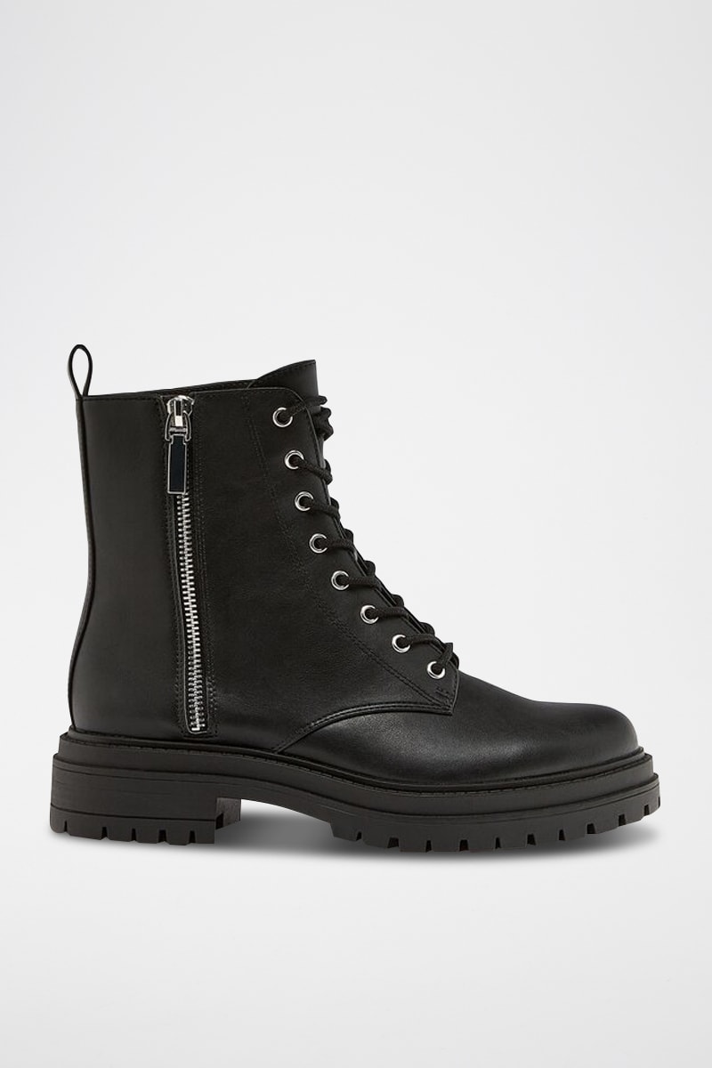 Chiusura con lacci sul davanti e con cerniera sul lato.