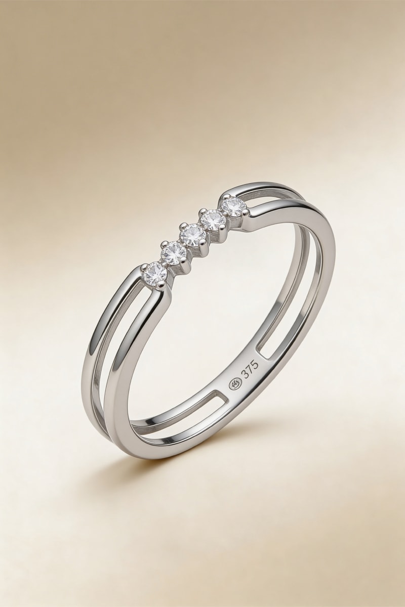 Anello in oro bianco con 5 diamanti.