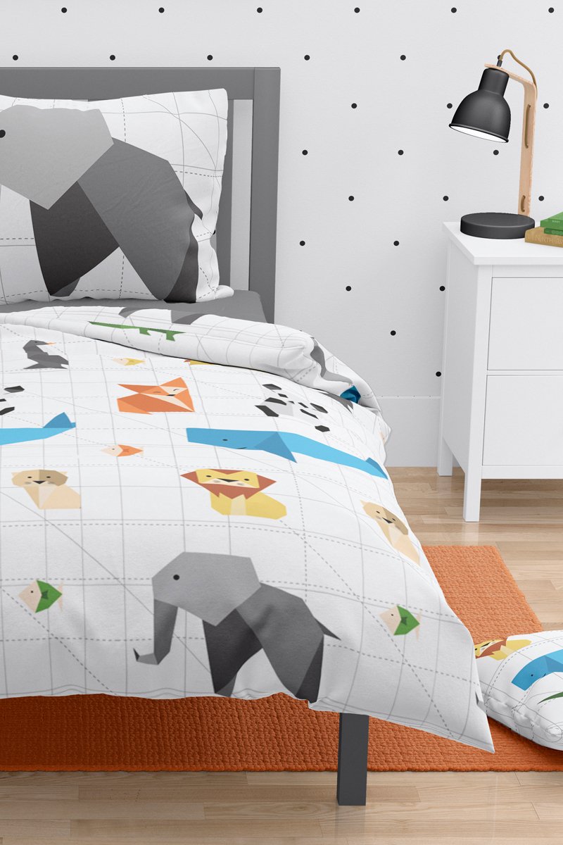 • Copripiumino: 140 x 200 cm/Lenzuolo sopra: 180 x 290 cm/Lenzuolo sotto: 80 x 190 cm
