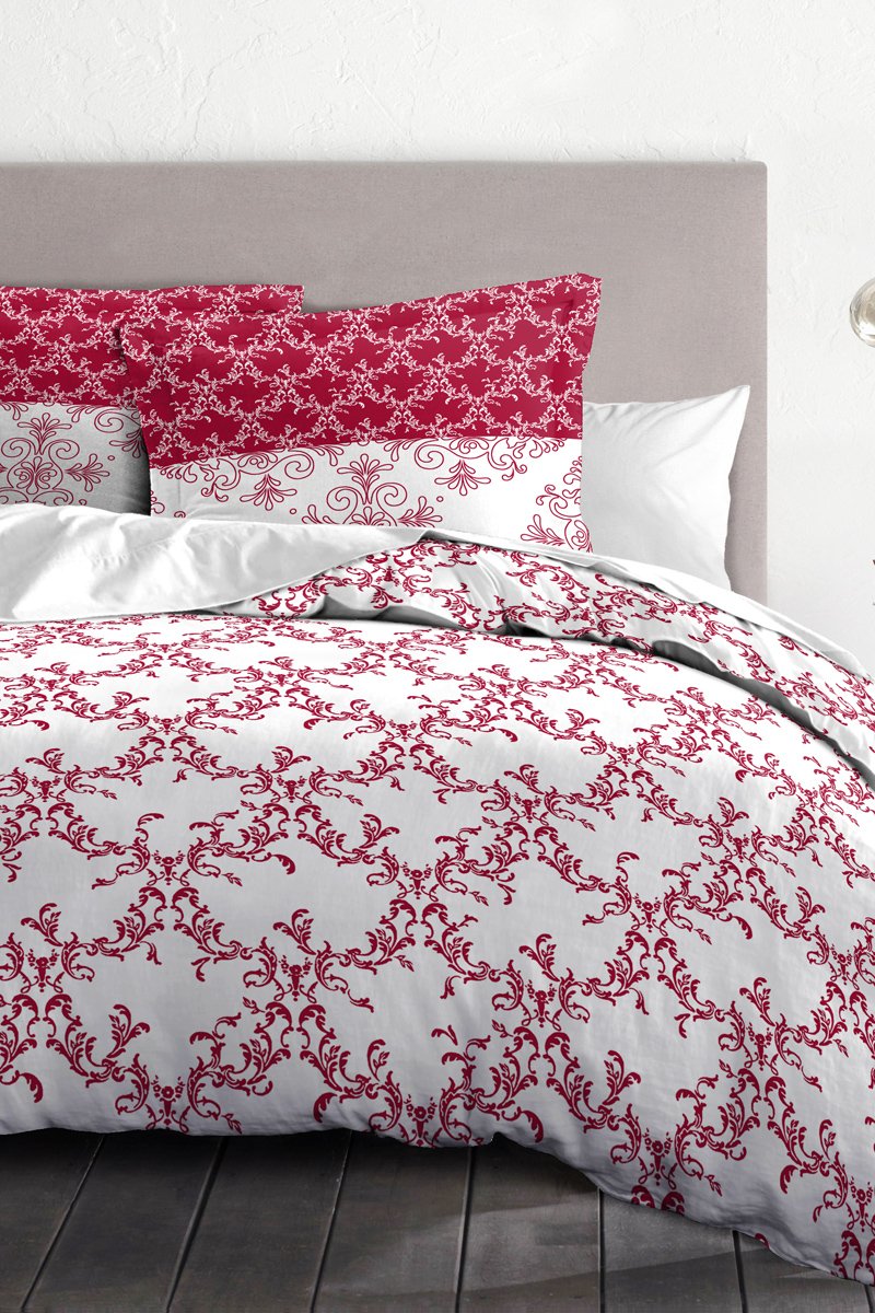Parure copripiumino in cotone - 57 fili/cm² Frise - Bordeaux e bianco