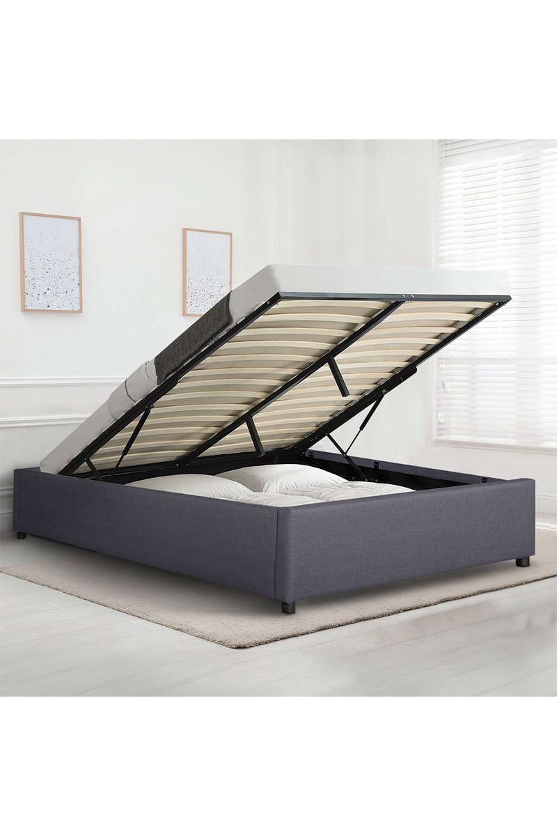 Letto contenitore Otto in tessuto grigio con rete 160 x 200 cm