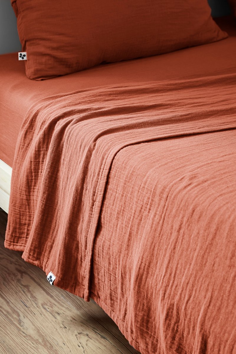 Lenzuolo sopra in garza di cotone Gaïa - Terracotta