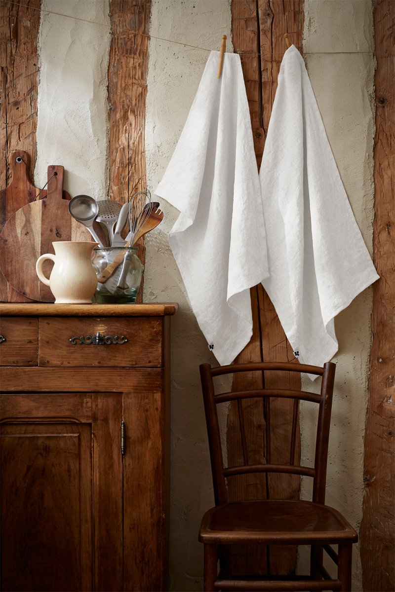 2 strofinacci in lino lavato Soline - Bianco