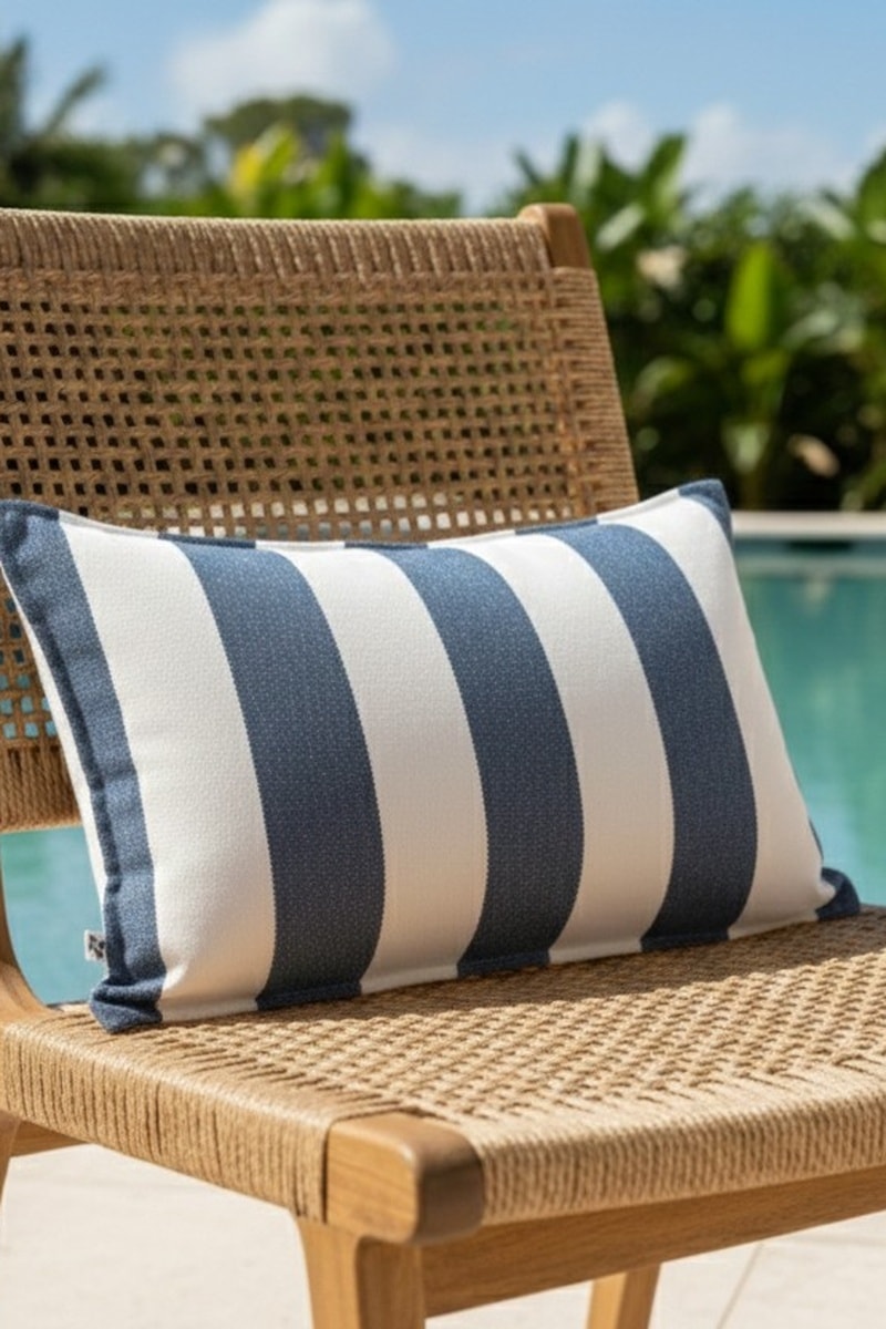 Copricuscino Noa - Bianco e blu scuro - 40 x 60 cm