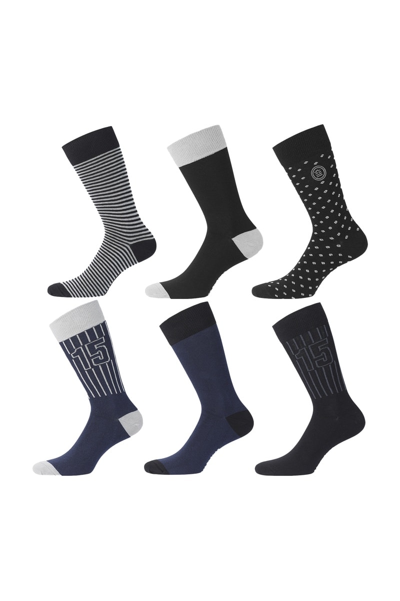 6 paia di calze Serge Blanco - Blu, nero e grigio