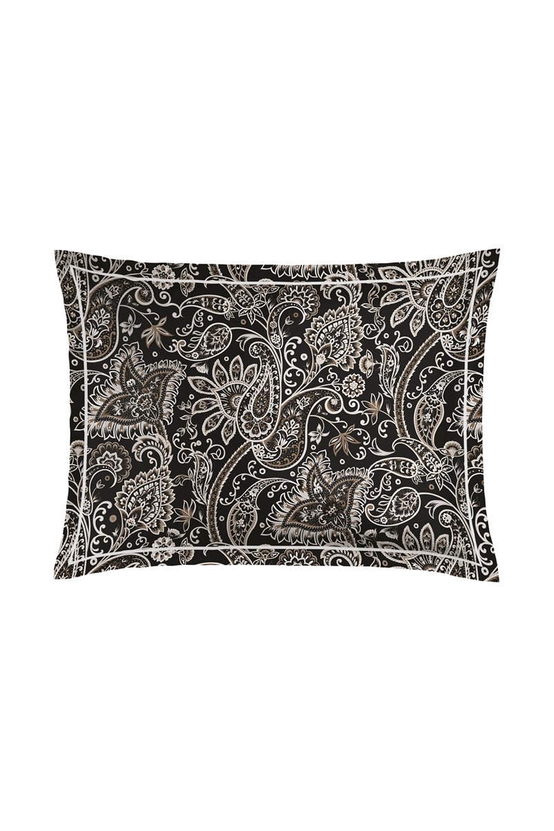 2 federe in raso di cotone 80 fili/cm² Paisley - Nero e bianco
