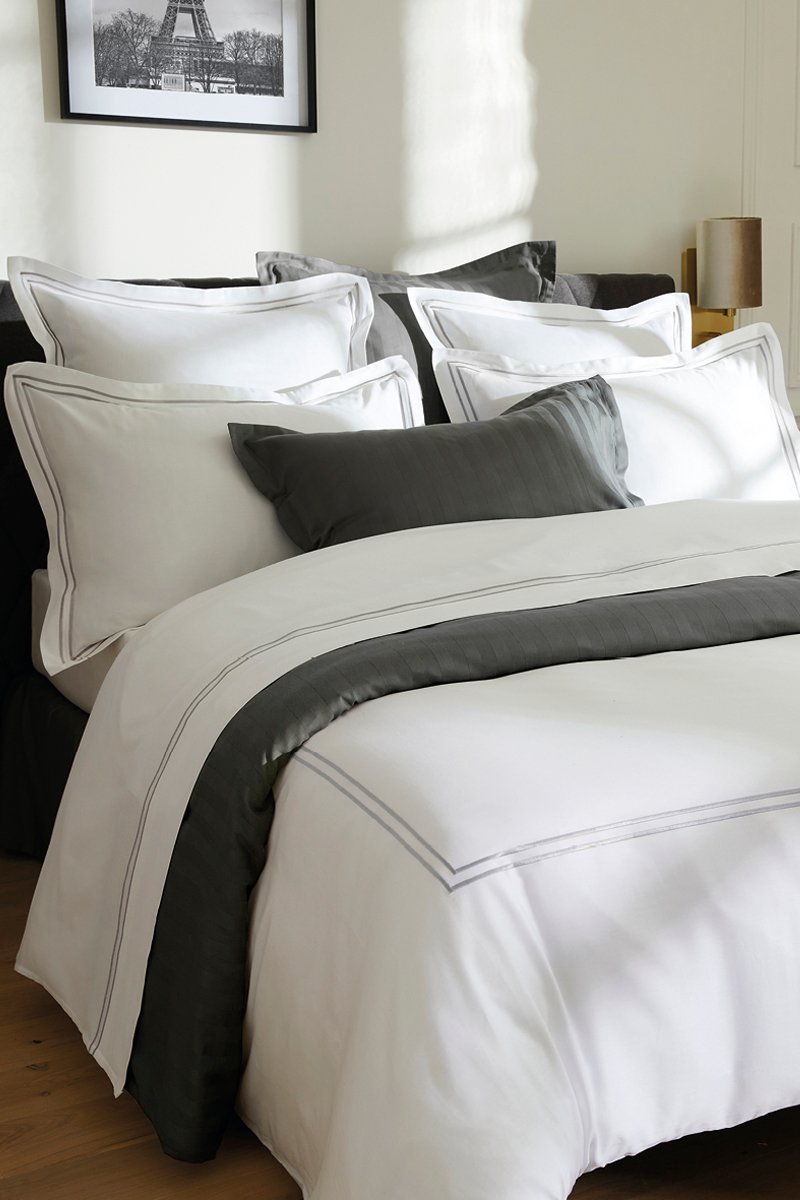 Parure copripiumino in raso di cotone 80 fili/cm² Saint-Tropez - Bianco e argentato