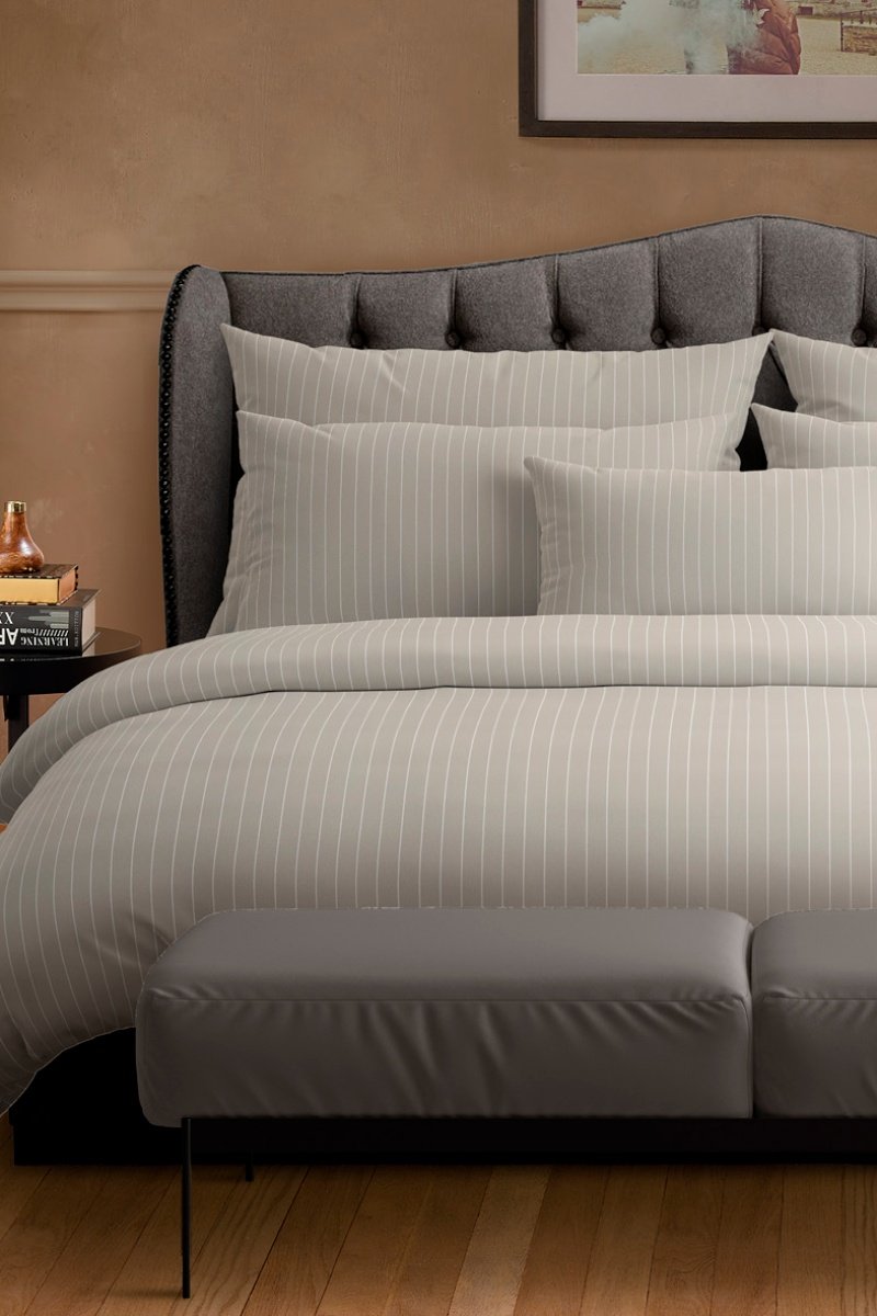 Parure copripiumino in raso di cotone 80 fili/cm² Rayures classiques - Taupe e bianco