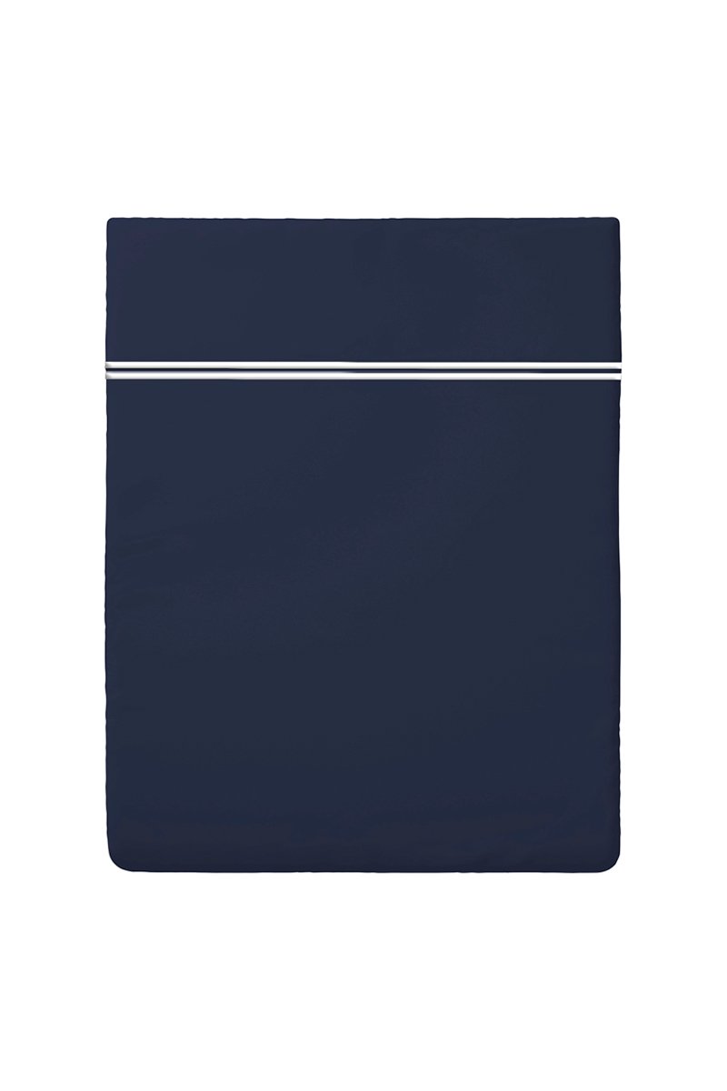 Lenzuolo sopra in raso di cotone 80 fili/ Saint-Tropez - Blu scuro e bianco