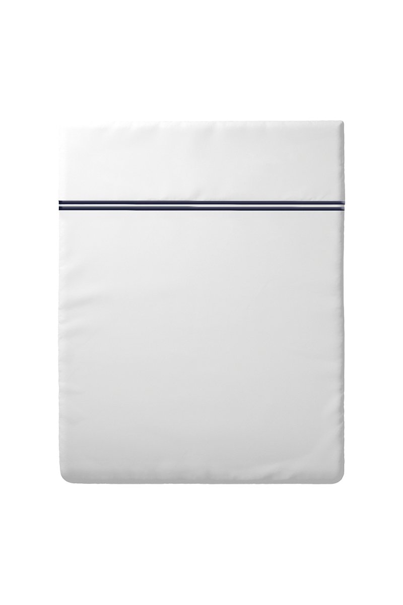 Lenzuolo sopra in raso di cotone 80 fili/ Saint-Tropez - Bianco e blu scuro