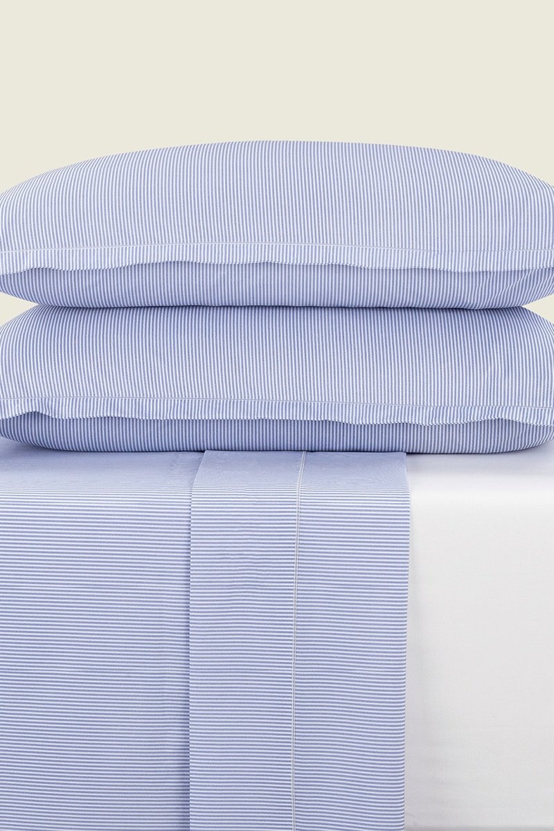 Parure lenzuola in percalle di cotone 80 fili/cm² Lyon - Azzurro