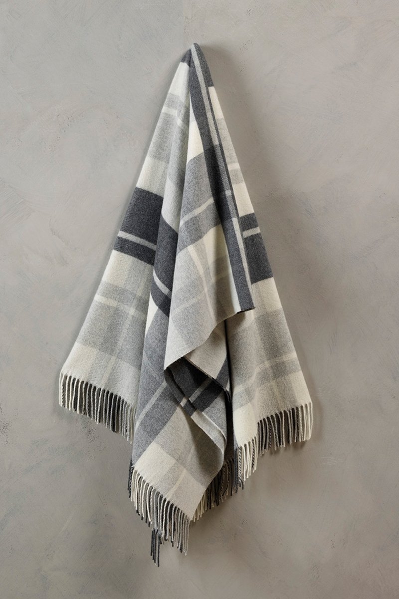 Plaid in misto lana - Bianco e grigio - 130 x 180 cm