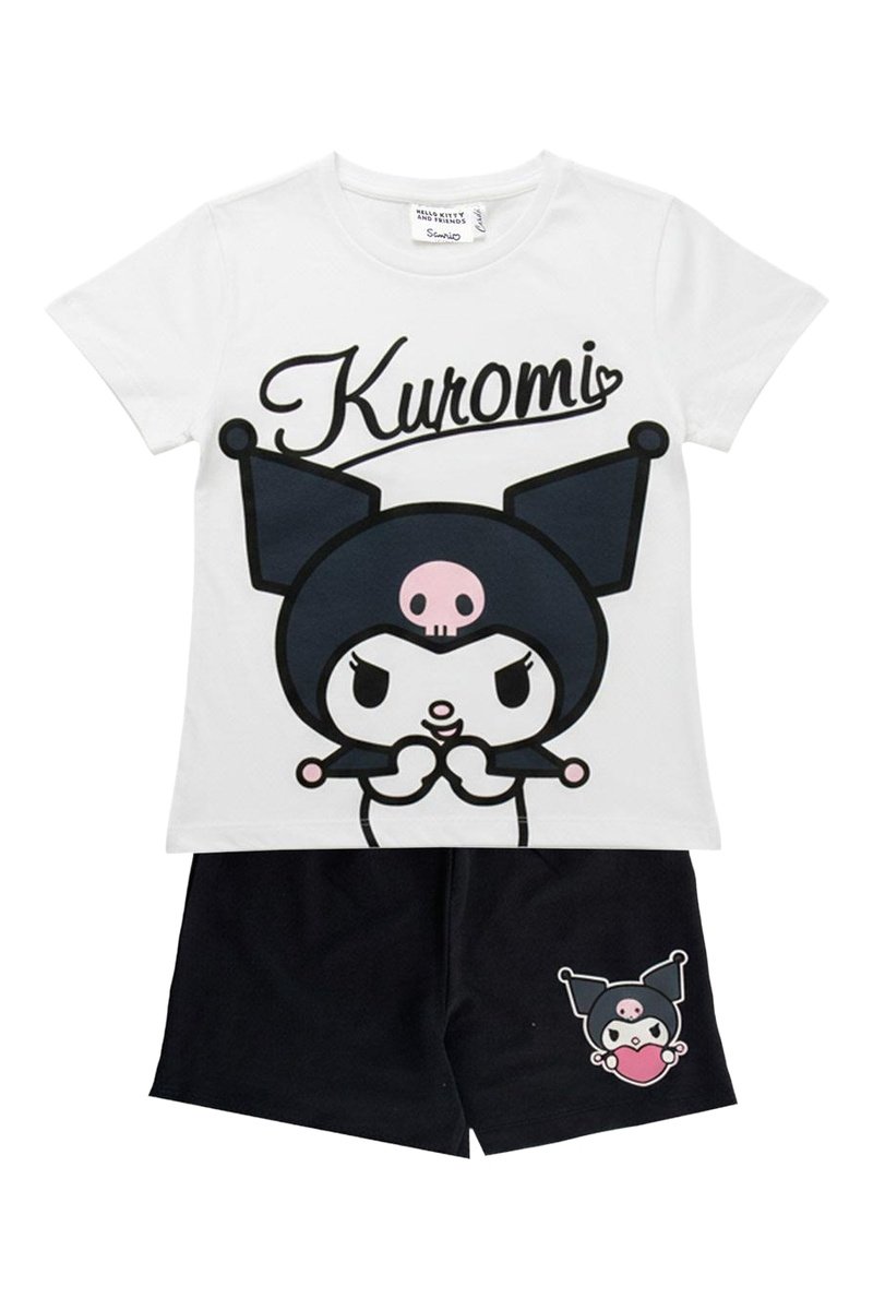 T-shirt e shorts Kuromi Hello Kitty Sanrio - Bianco e nero