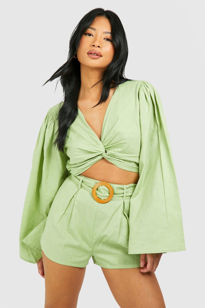 Shorts a vita alta - Verde chiaro