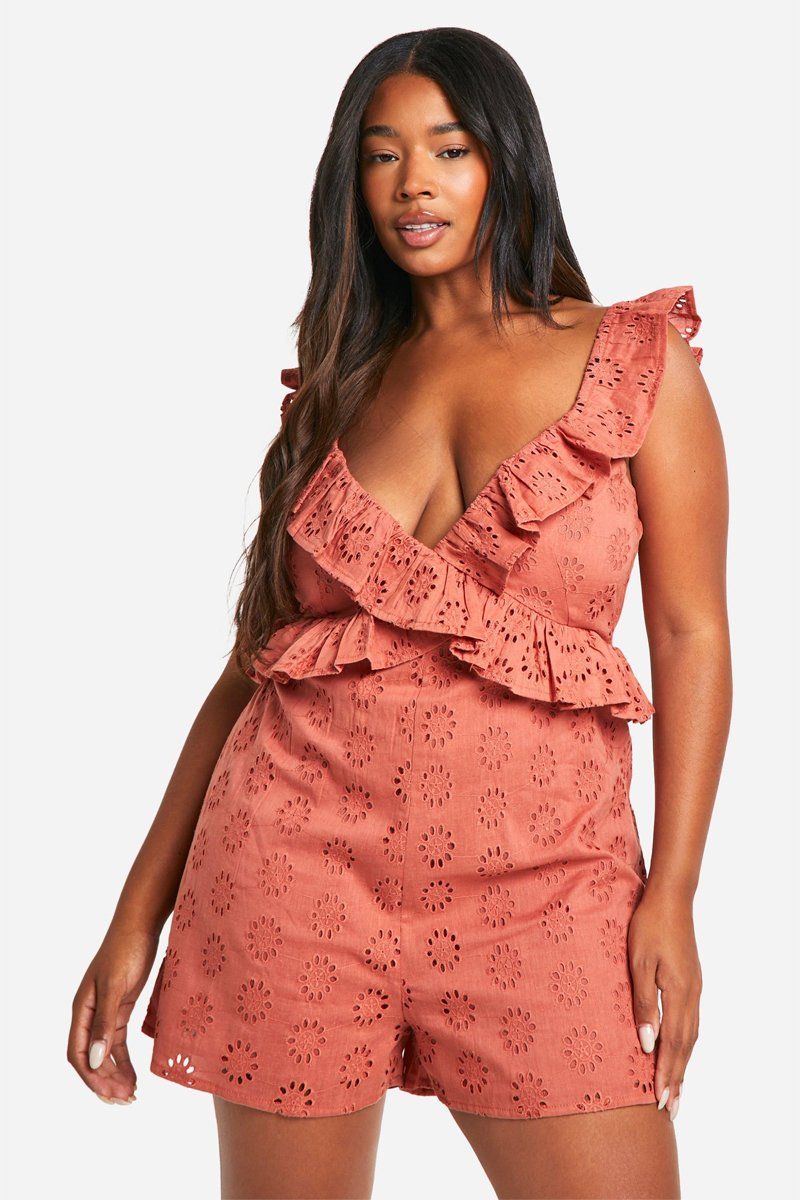 Tuta corta in sangallo - Rosso mattone