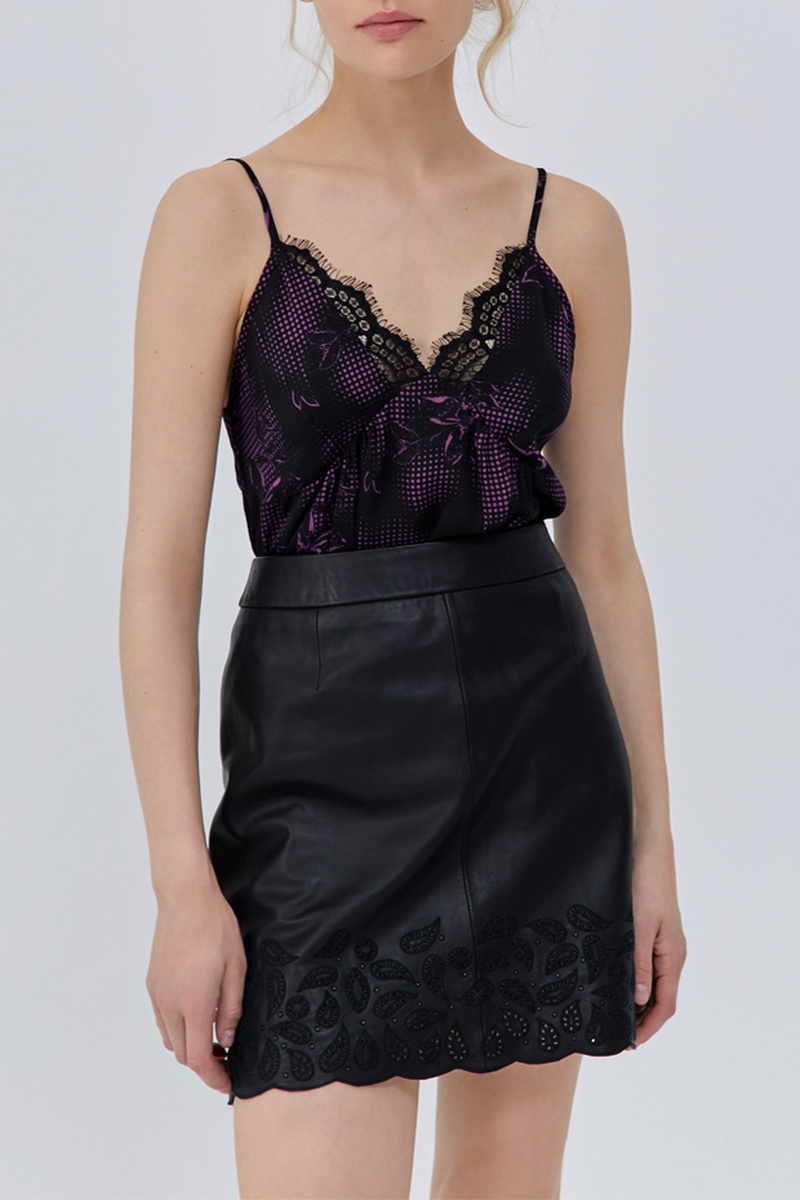 Inserto in pizzo e arricciature sul davanti.