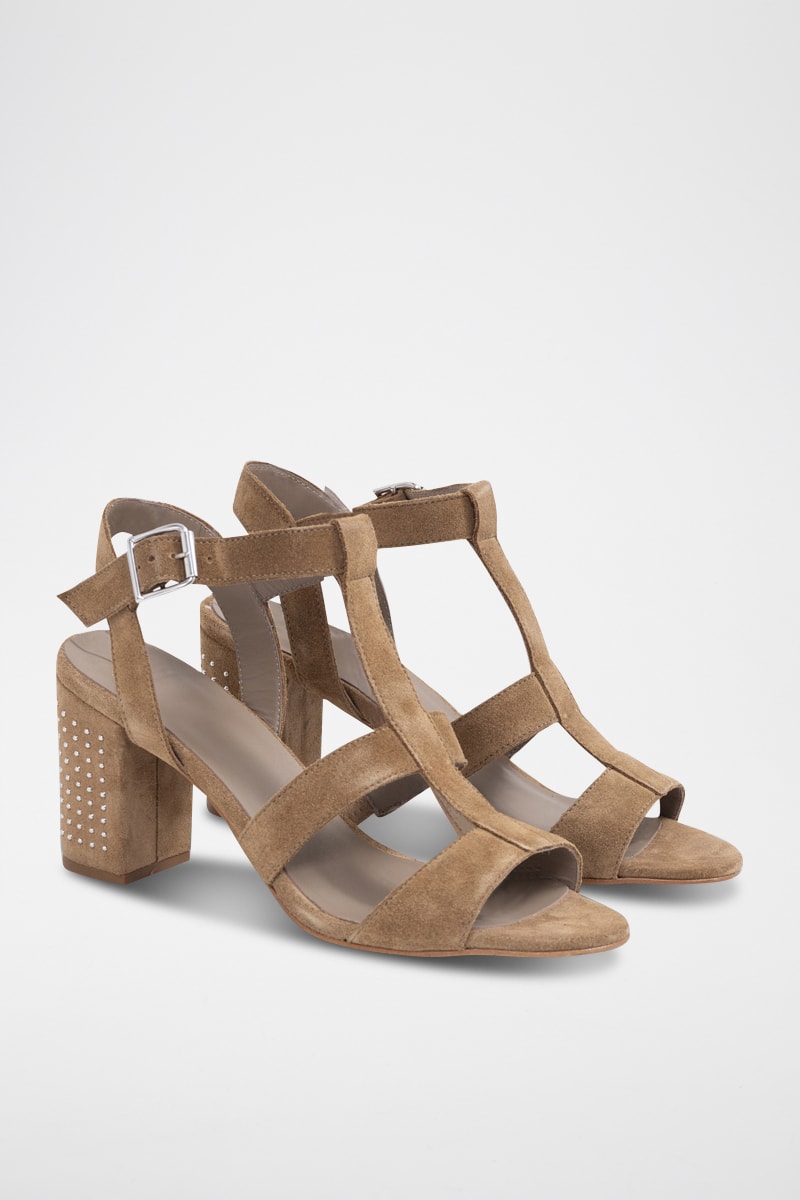 Sandali con tacco in pelle scamosciata di vitello - Cammello - IKKS