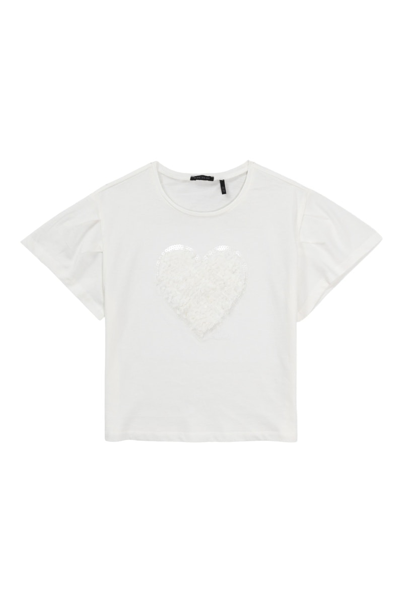 Motivo cuore in rilievo, logo ricamato e paillettes sul davanti.