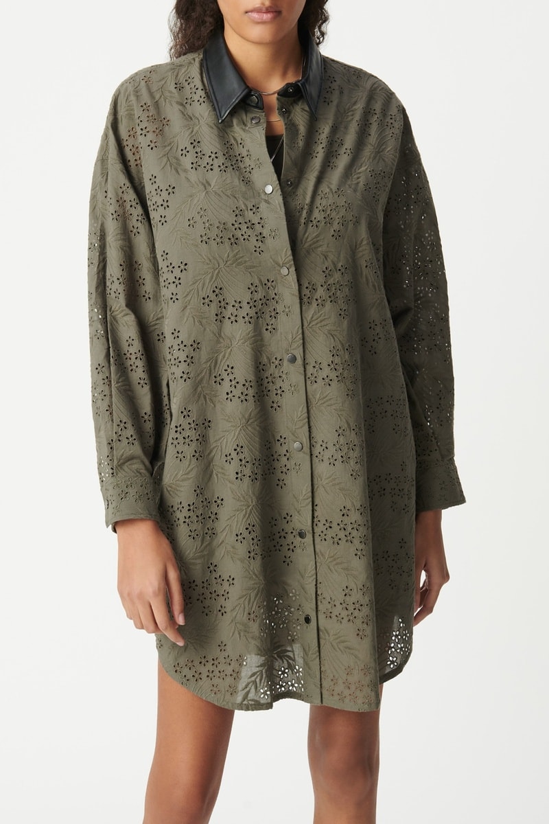Abito camicia in sangallo in cotone bio.