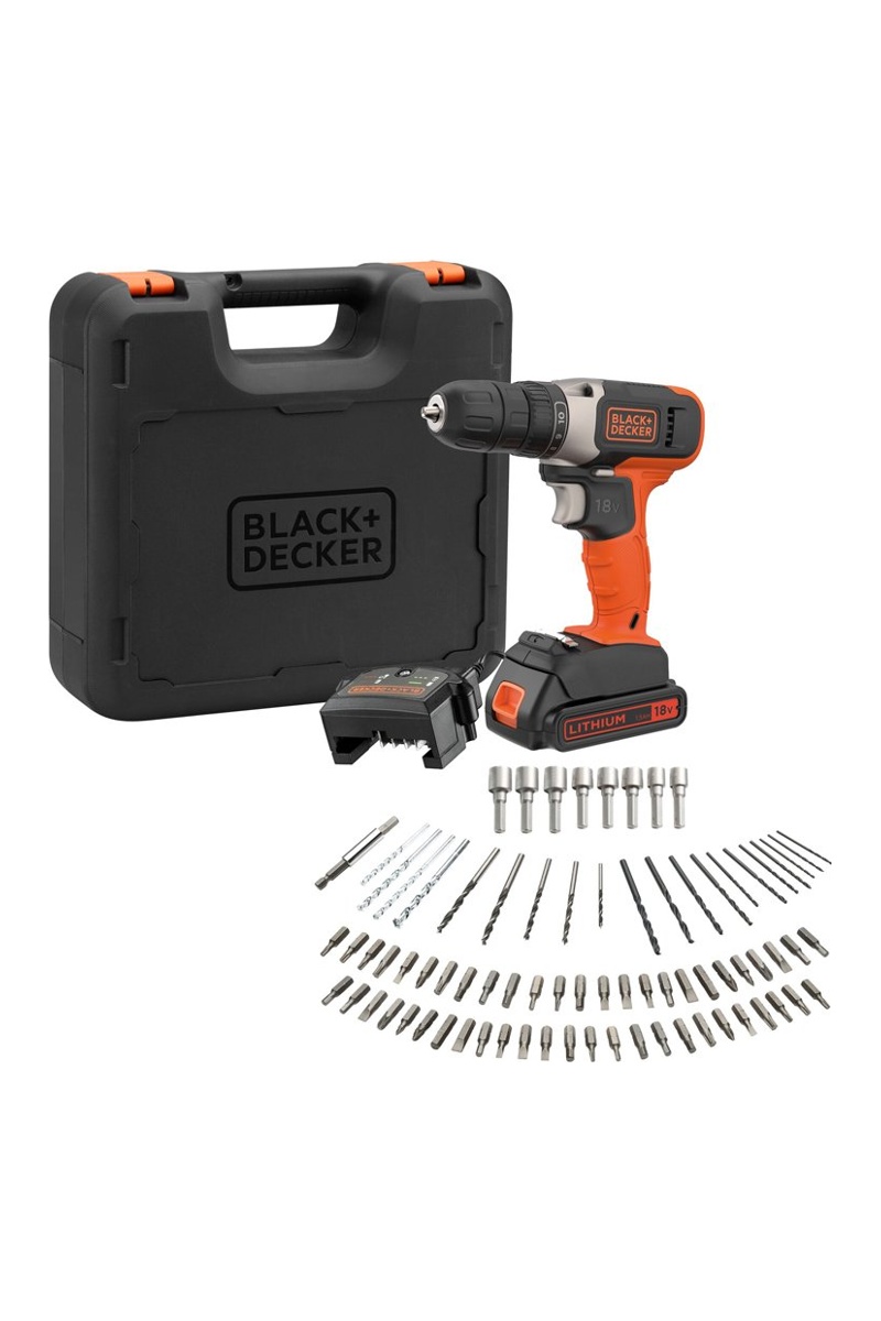 Articolo consegnato con 1 batteria 1,5 Ah + 1 caricabatteria 400 mA + 80 accessori di perforazione e avvitatura in una cassetta degli attrezzi.