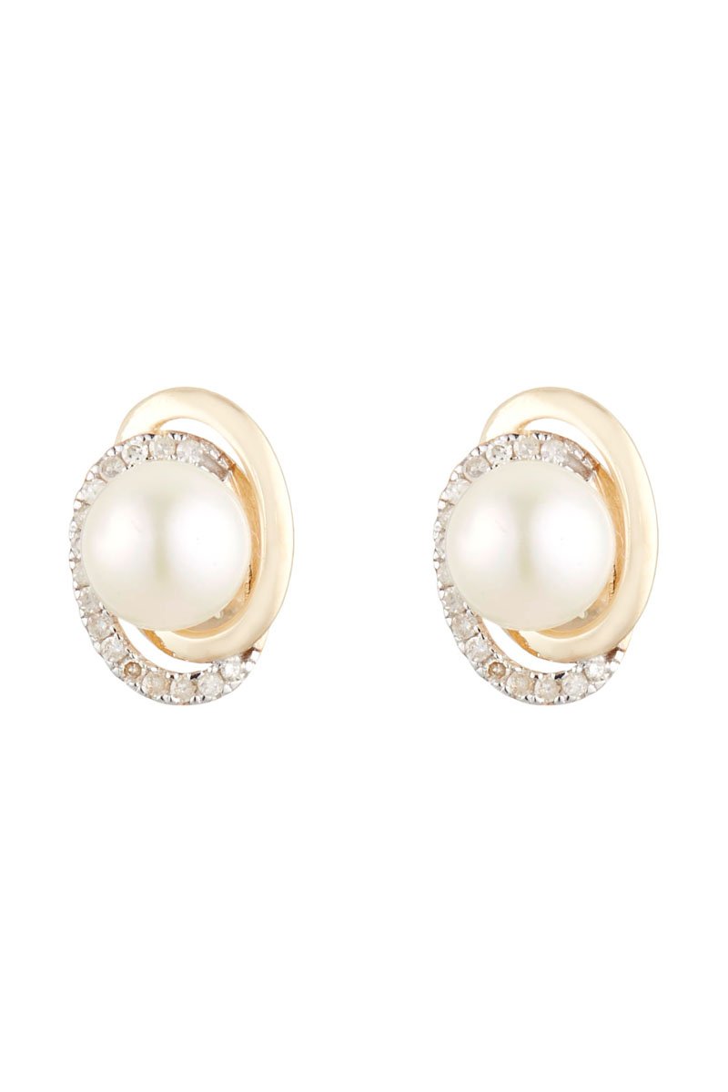 Orecchini in oro giallo con 16 diamanti e una perla d’acqua dolce.