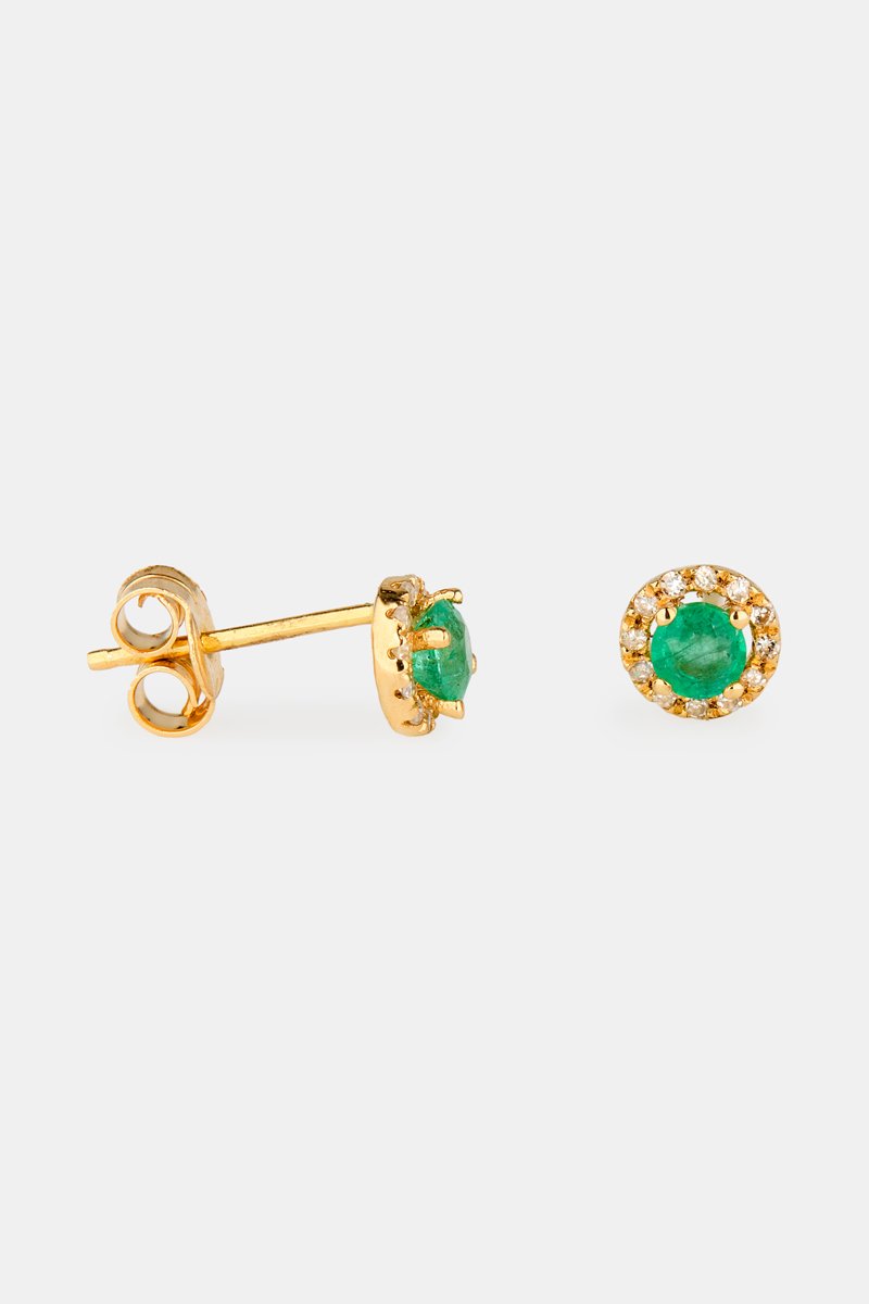 Orecchini in oro giallo con uno smeraldo e 24 diamanti.