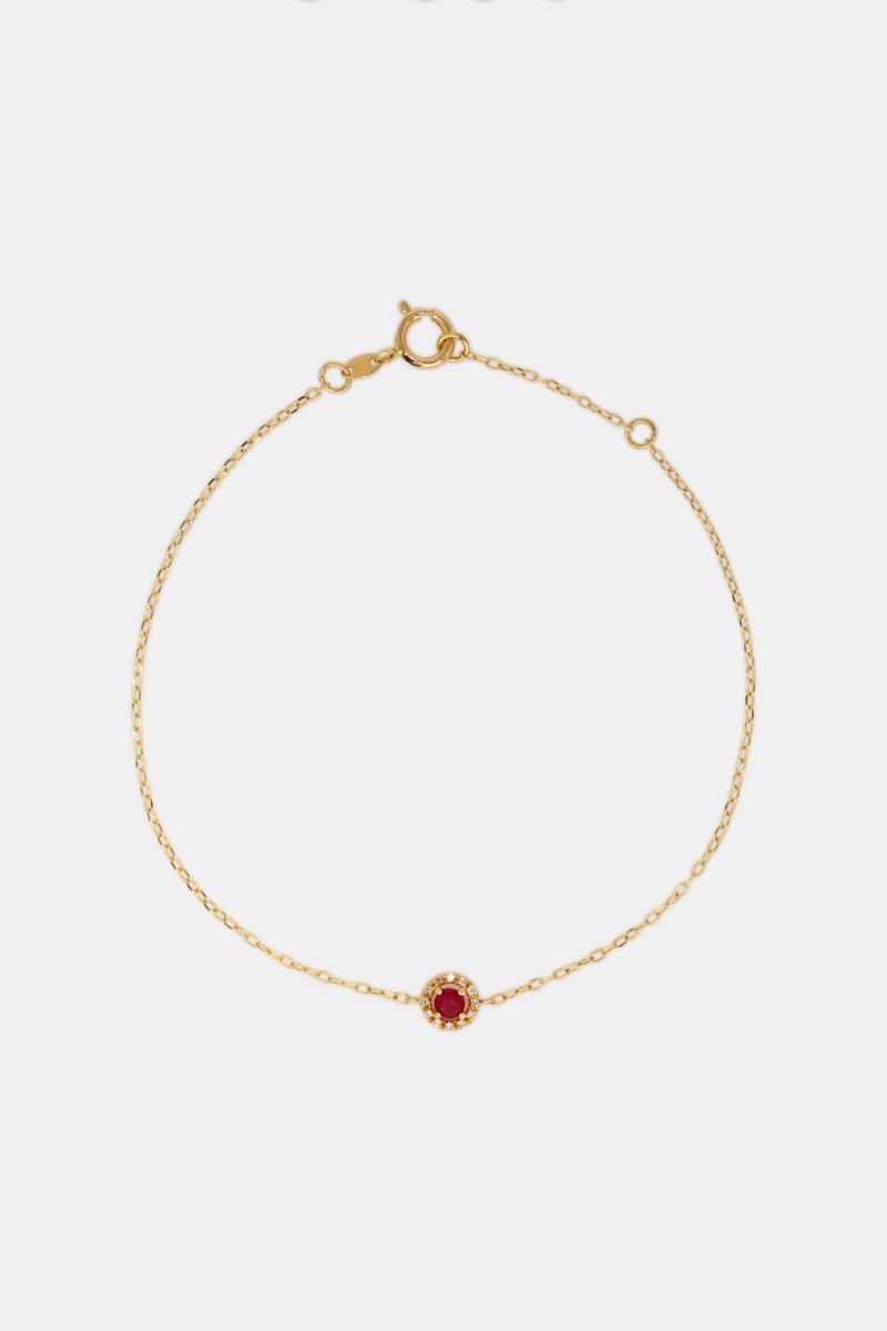 Bracciale in oro giallo con un rubino e 12 diamanti.