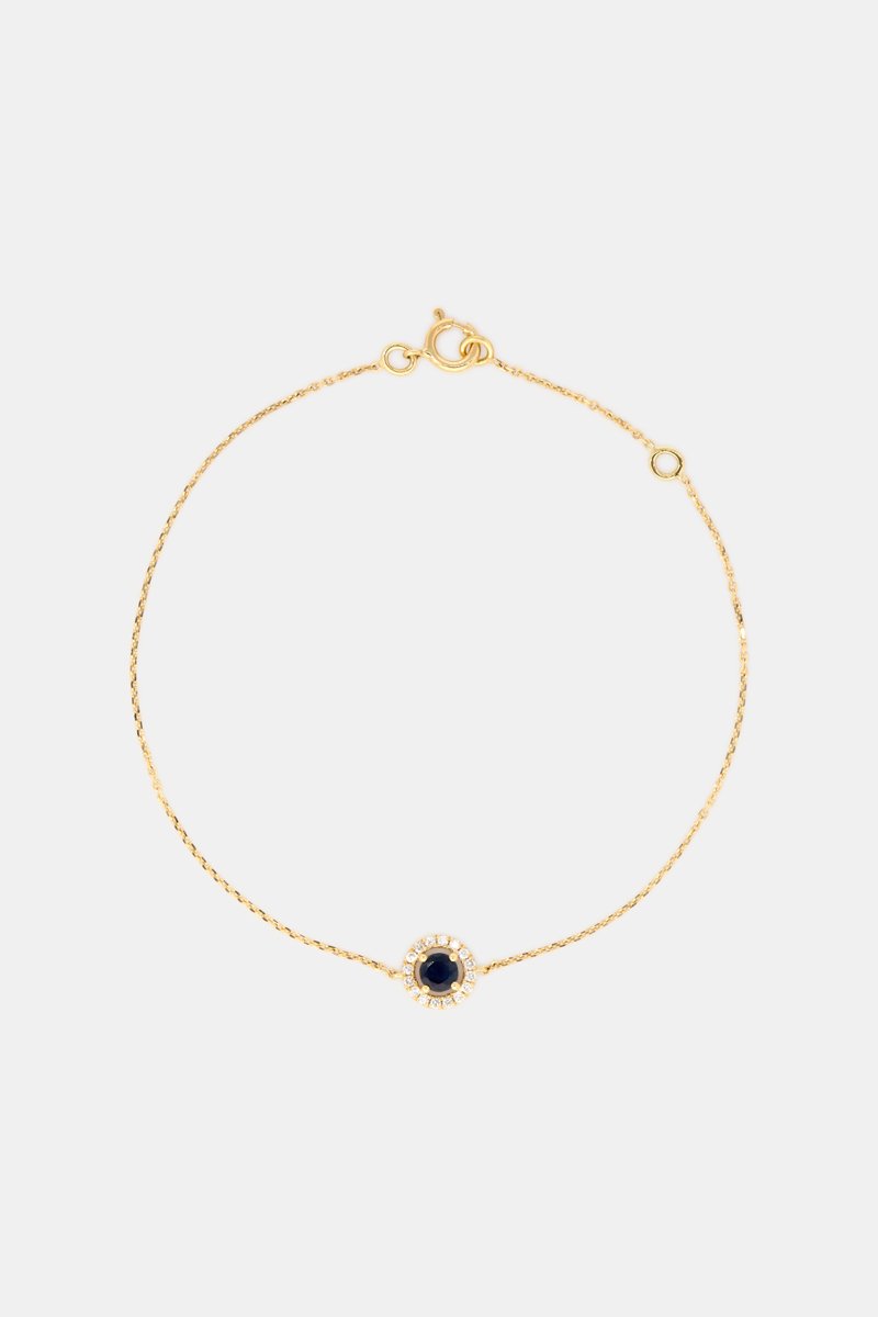 Bracciale in oro giallo con uno zaffiro e 6 diamanti.