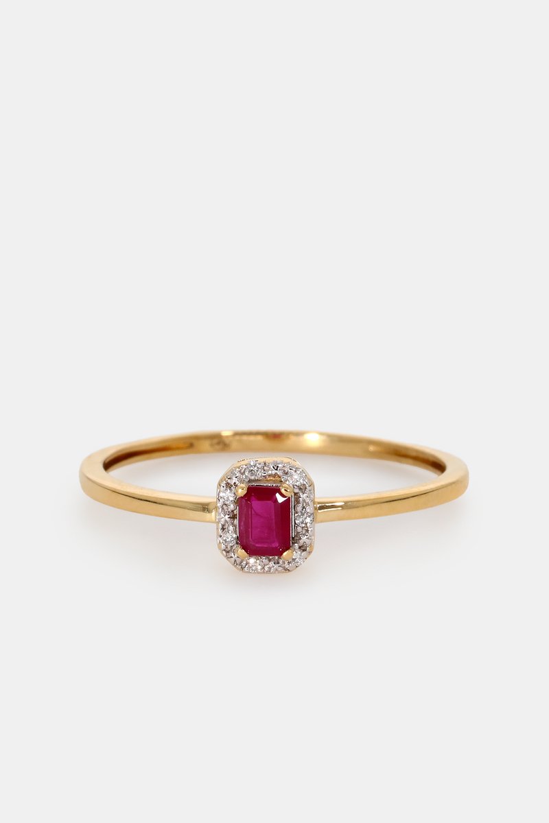 Anello - Oro giallo 18 kt, rubino e diamanti