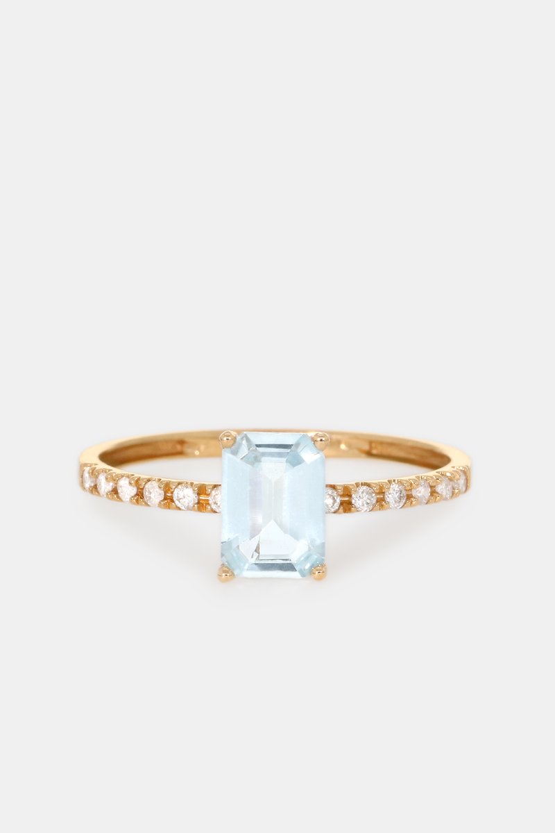 Anello - Oro giallo 18 kt, acquamarina e diamanti