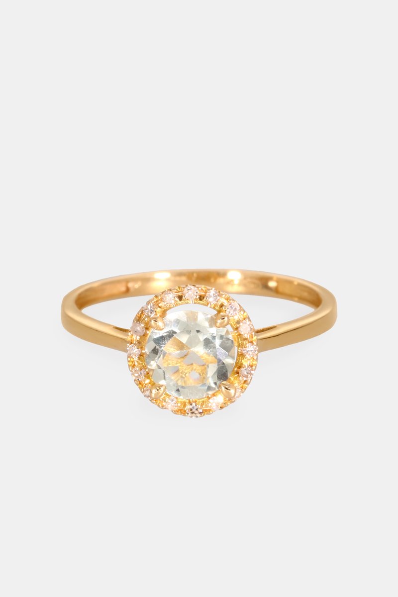 Anello - Oro giallo 18 kt, diamanti e ametista