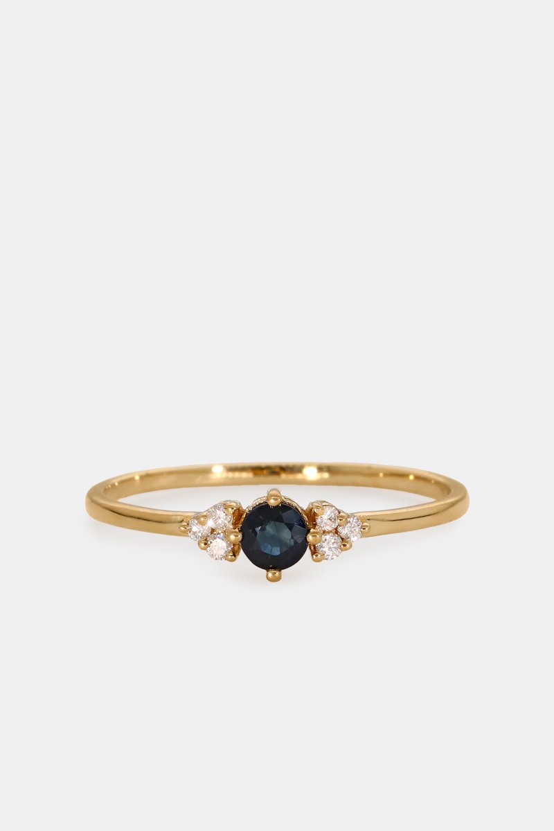 Anello in oro giallo con uno zaffiro e 6 diamanti.