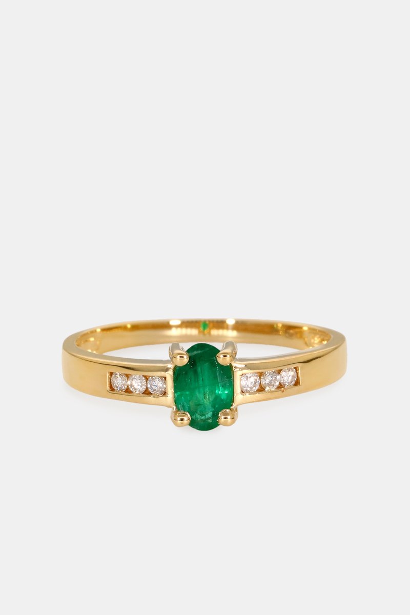 Anello - Oro giallo 18 kt, smeraldo e diamanti