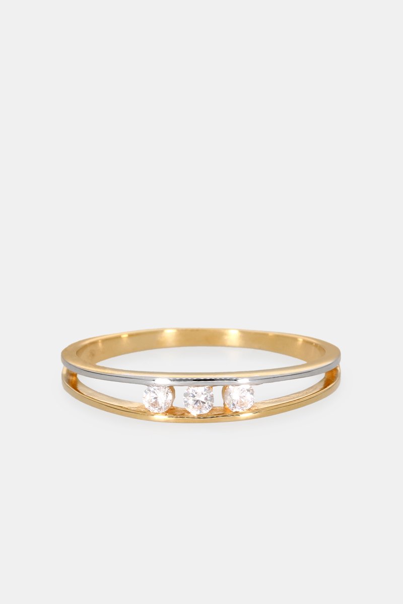 Anello in oro giallo e oro bianco con 3 zirconi.
