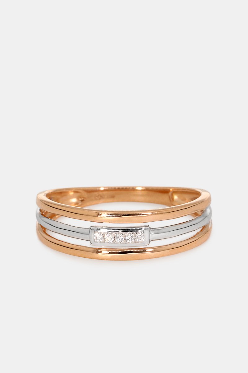 Anello in oro bianco e oro rosa con 5 diamanti.