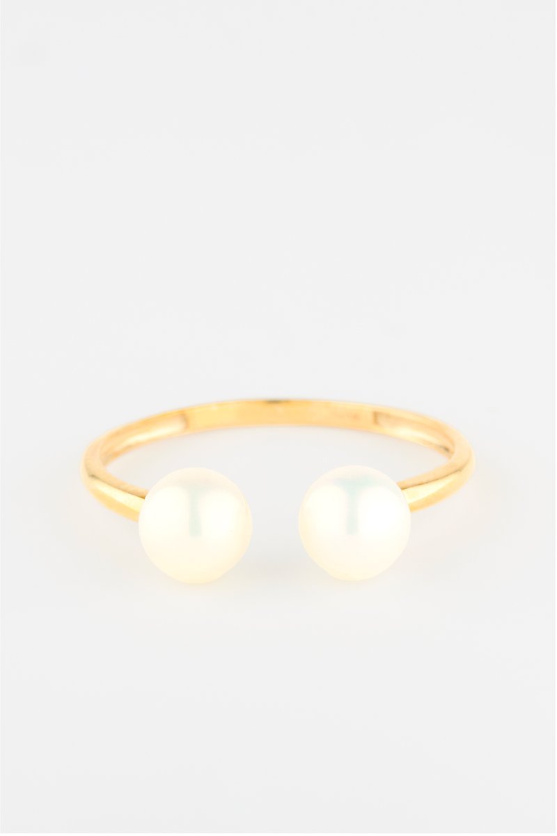 Anello in oro giallo con 2 perle d’acqua dolce.