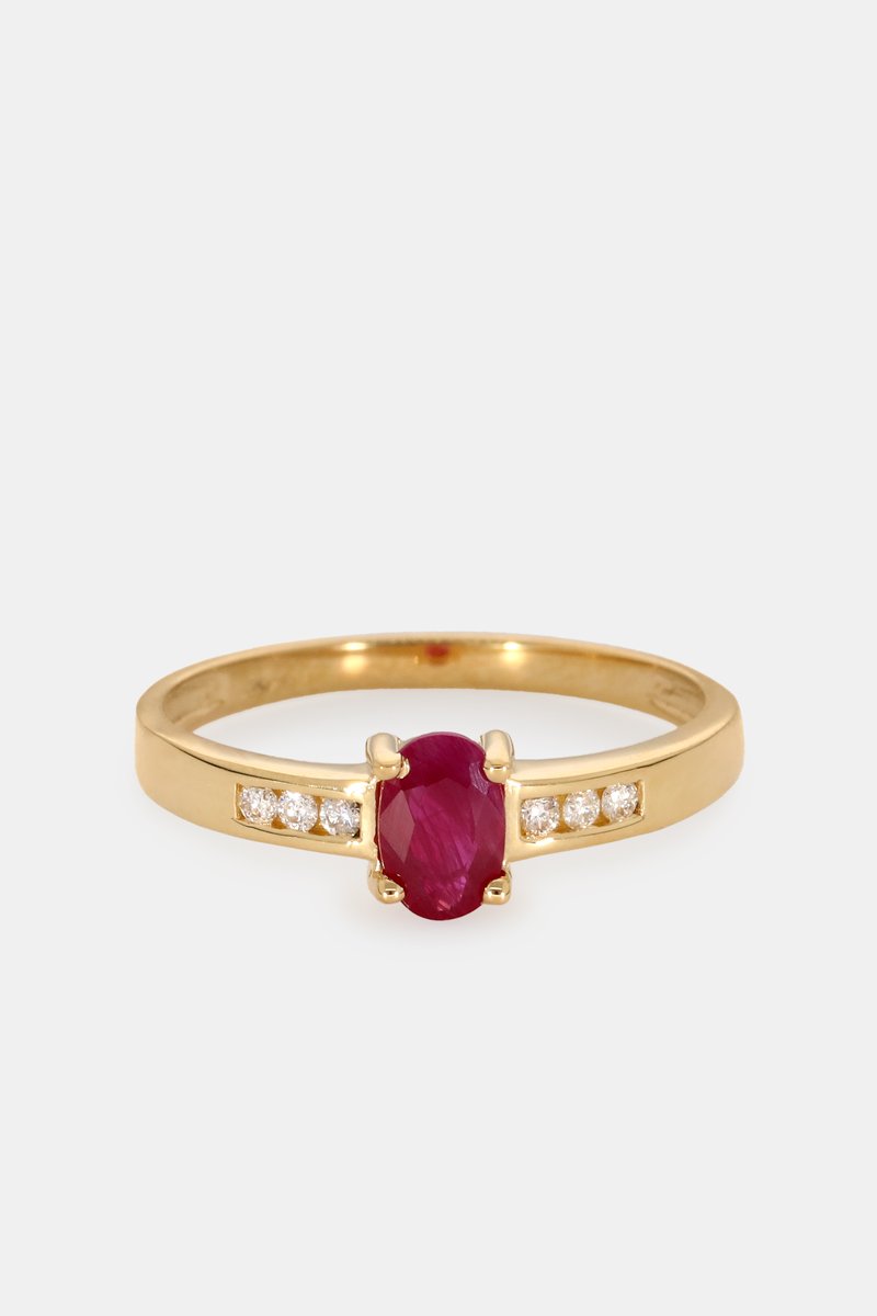 Anello - Oro giallo 18 kt, rubino e diamanti