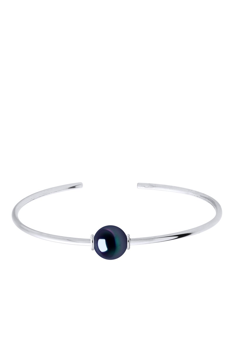 Bracciale bangle aperto in argento con perla coltivata d’acqua dolce.