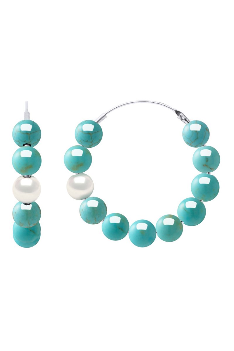Orecchini a cerchio - Argento, perle coltivate d’acqua dolce e turchesi