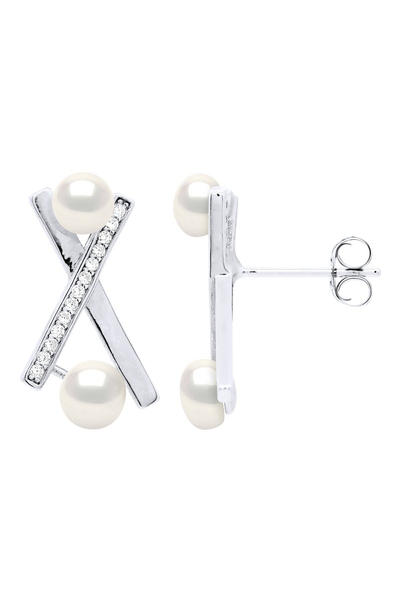 Orecchini in argento con 2 perle coltivate d’acqua dolce e zirconi.