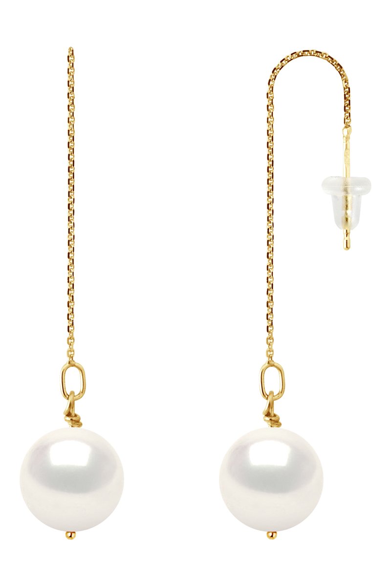 Orecchini pendenti in oro giallo con perla coltivata d’acqua dolce.