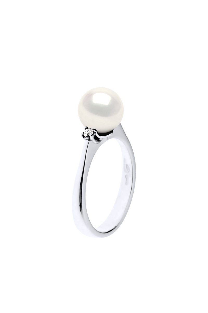Anello - Oro bianco, diamanti e perla coltivata d’acqua dolce