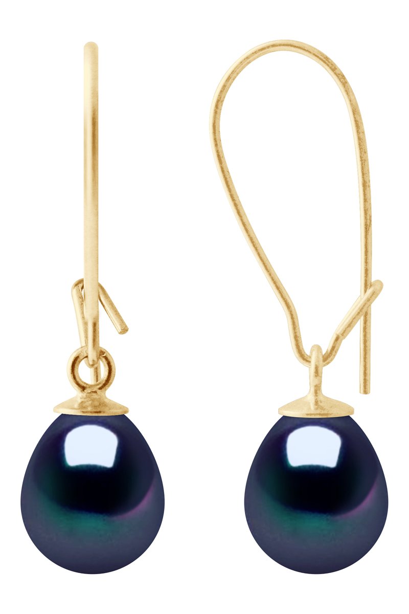 Orecchini pendenti in oro giallo con una perla coltivata d’acqua dolce.