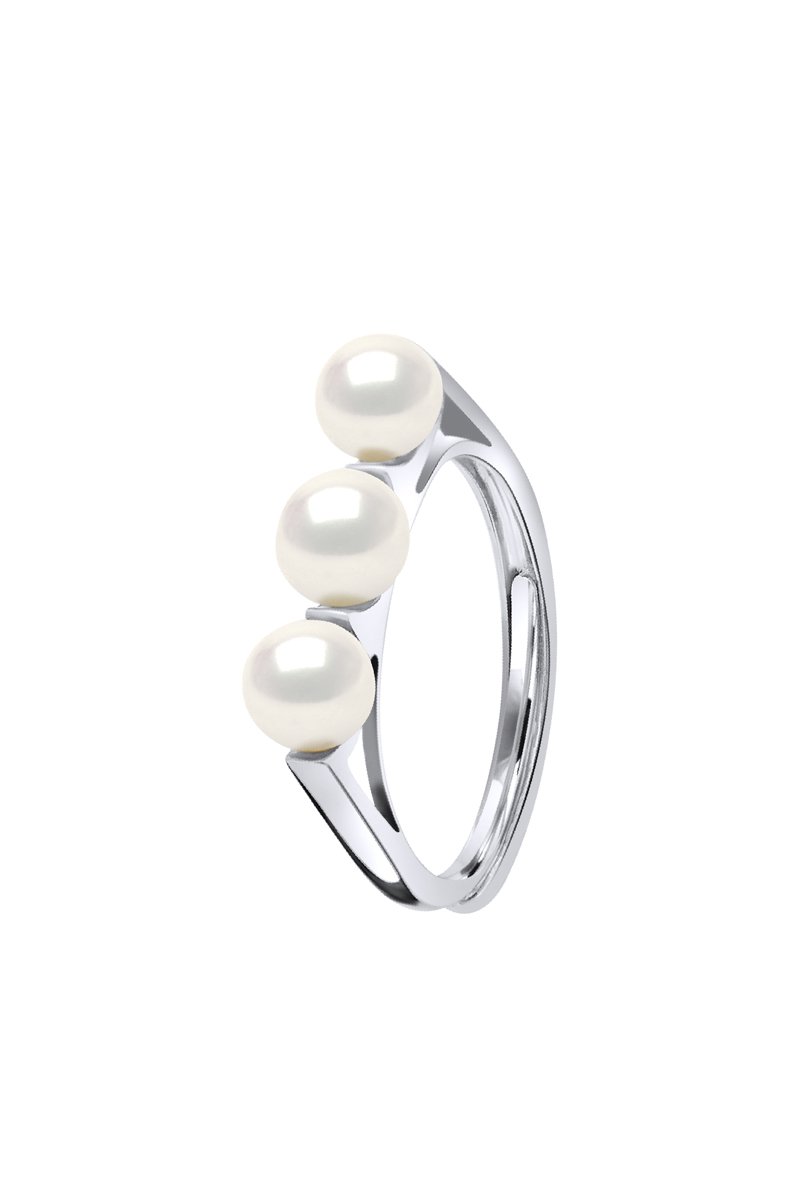 Anello regolabile in argento con perle coltivate d’acqua dolce.